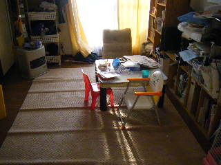 敷くために、とりあえず物を寄せた感が満載!!ズボラ万歳!!