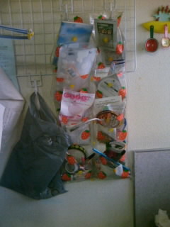 キッチン横に引っかかってる百均で買ったウオールポケット