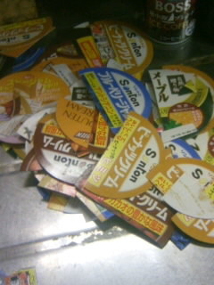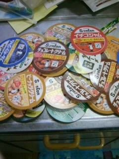 ジャムのふたです。なんでこんなにあるかって??ベルマークがついてるんです。小学生がいるから、集めないといけないでしょ。