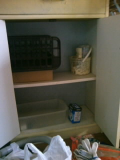 いまこいつは上半身→食器棚、下半身→住まいの品、大事な部分(要するに真ん中の引き出しね